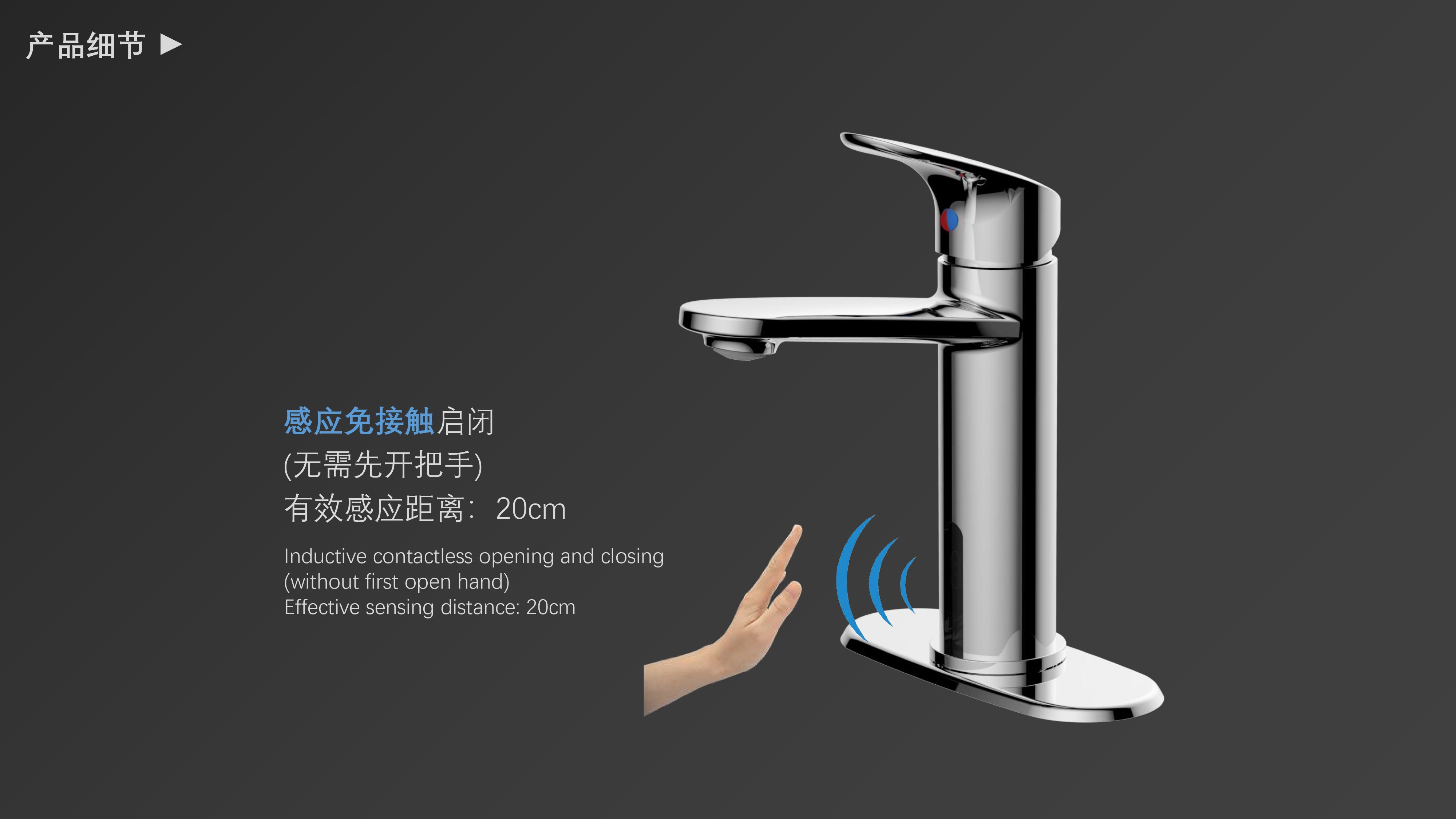 cUPC/ NSF61/ AB1953/ WaterSense/ ADA認(rèn)證;雙控面盆龍頭;感應(yīng)免接觸啟閉,有效感應(yīng)距離20cm;智能芯片恒溫專利技術(shù)雙控盒;氣泡水出水細(xì)膩不飛濺